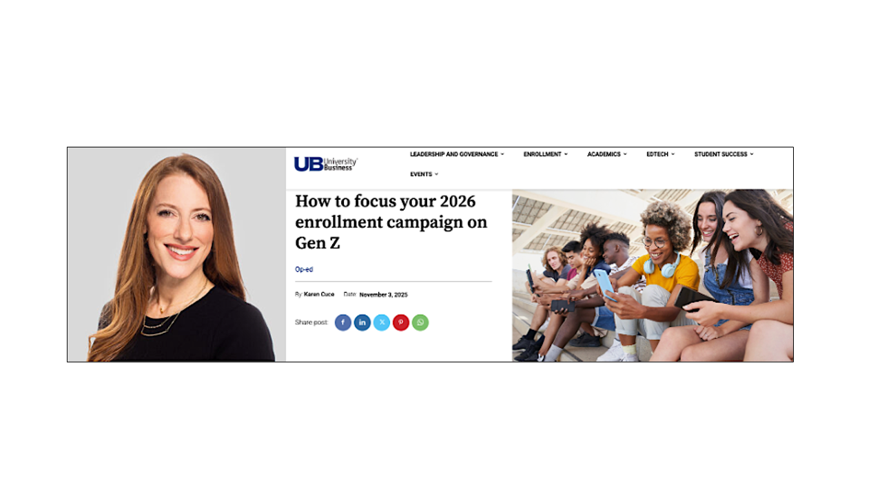 In her recent University Business article, Karen Cuce, our VP of Strategy, shares nine tips for how higher ed institutions can rethink their approach to connect with Gen Z and drive enrollment success in 2026: